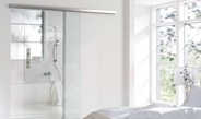 Vi har nå tatt inn til lager skyvdørsbeslag til innvendige herdede glass skyvedører av type Geze Levolan 60. Dett er er et meget pent skyvedørsbeslag med minimale dimensjoner. Softstop ved åpning og lukking. Tilpasset vegg og takmontering. Glassdørene produseres på mål og i forskjellige glasstyper.